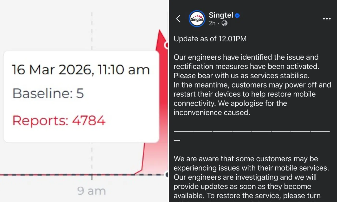 Previously, a mobile service outage affected Singtel customers for six hours in Nov 2025.