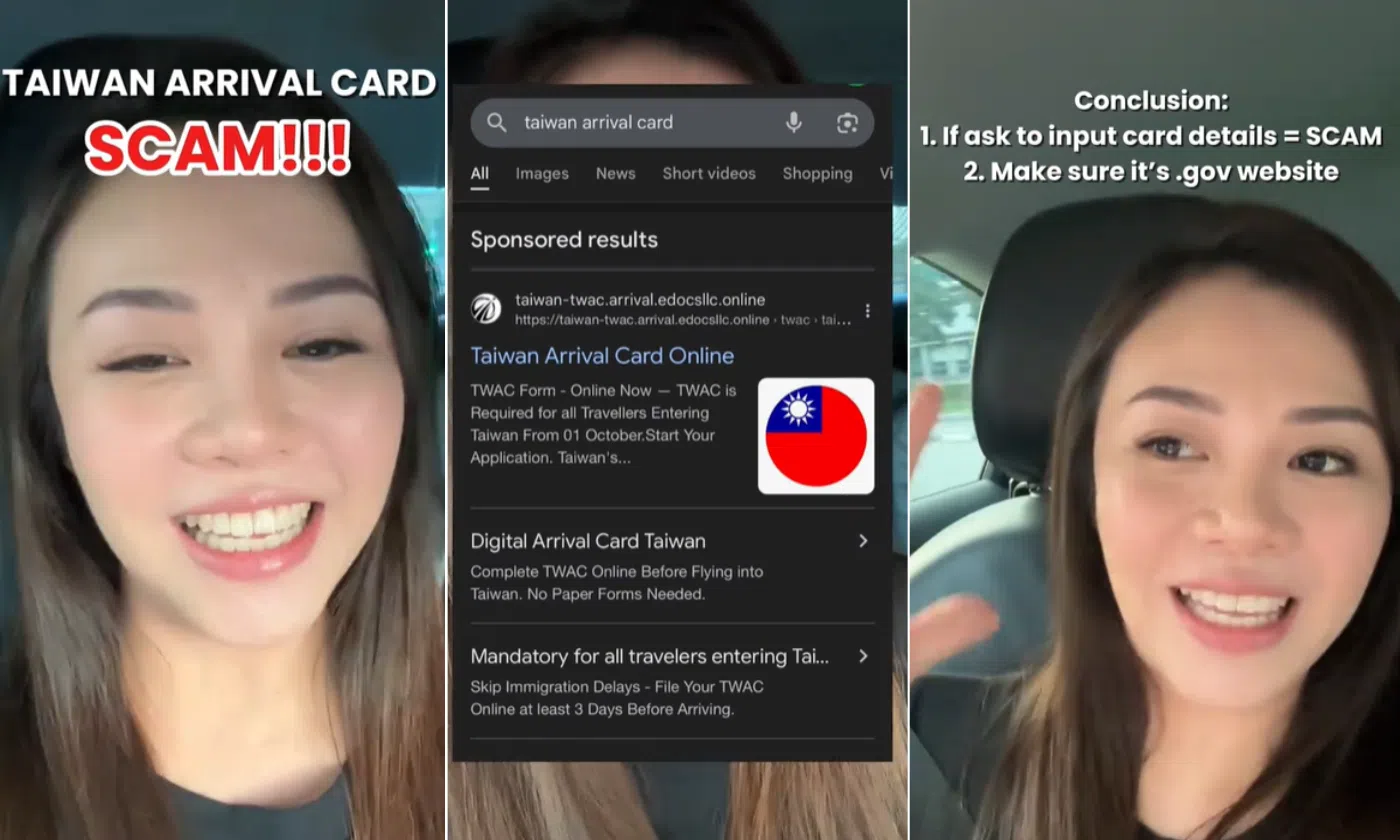 Travellers heading to Taiwan this holiday season have been warned about a fake Taiwan Arrival Card (TWAC) website, after TikToker Athalie Tseng claimed her friend personally fell victim to the scam.