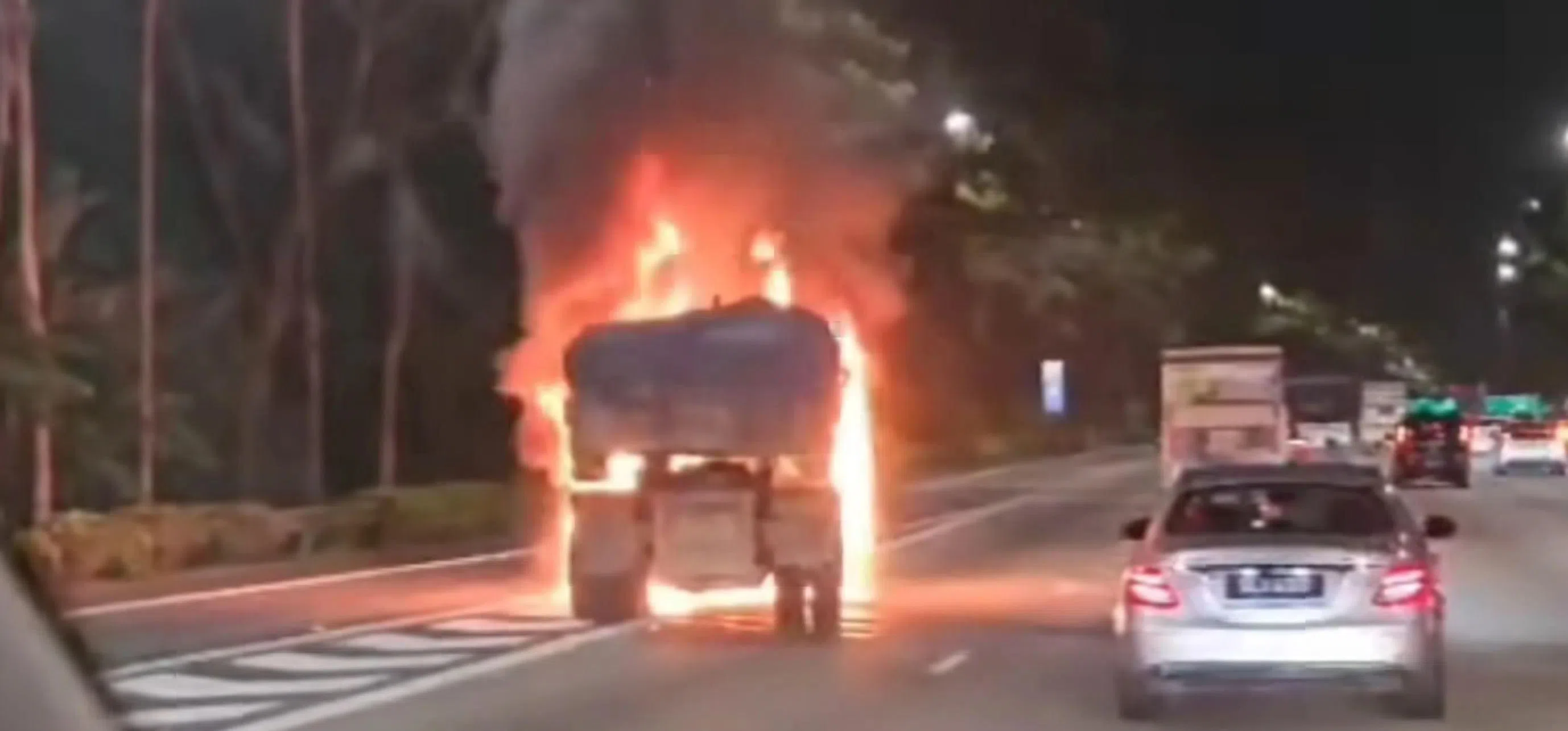 In a video posted on the SGRV Facebook group, the front of a stationary truck, which is located on the left lane of the road, is seen engulfed in flames.