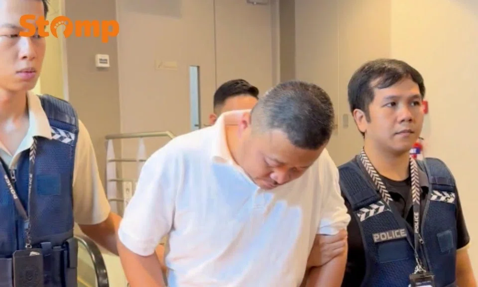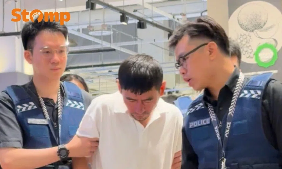 Police were seen bringing Zhang, 43, to a dining spot in VivoCity at around 10.40am.