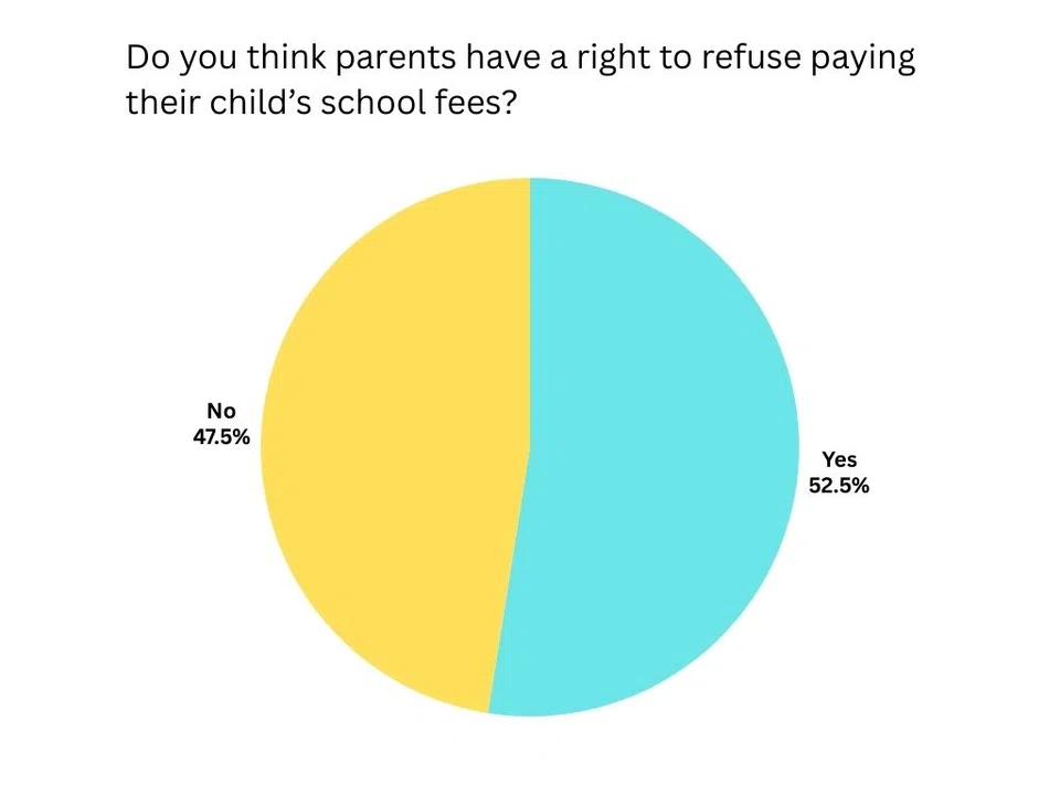 However, 52.5 per cent of respondents also believed parents have the right to refuse to pay their children's school fees.