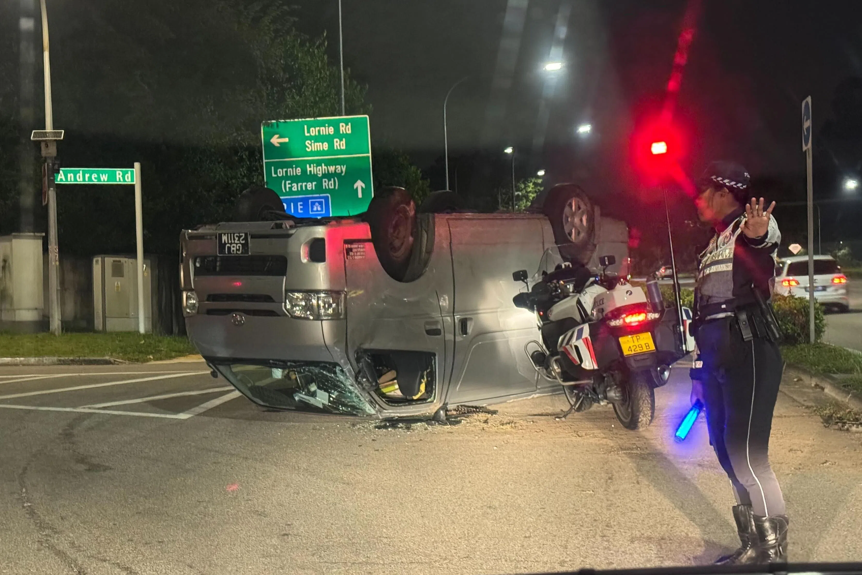 In response to The Straits Times' queries, the police said they were alerted to an accident involving a van and a taxi along Lornie Road towards Adam Road at about 5.35pm.