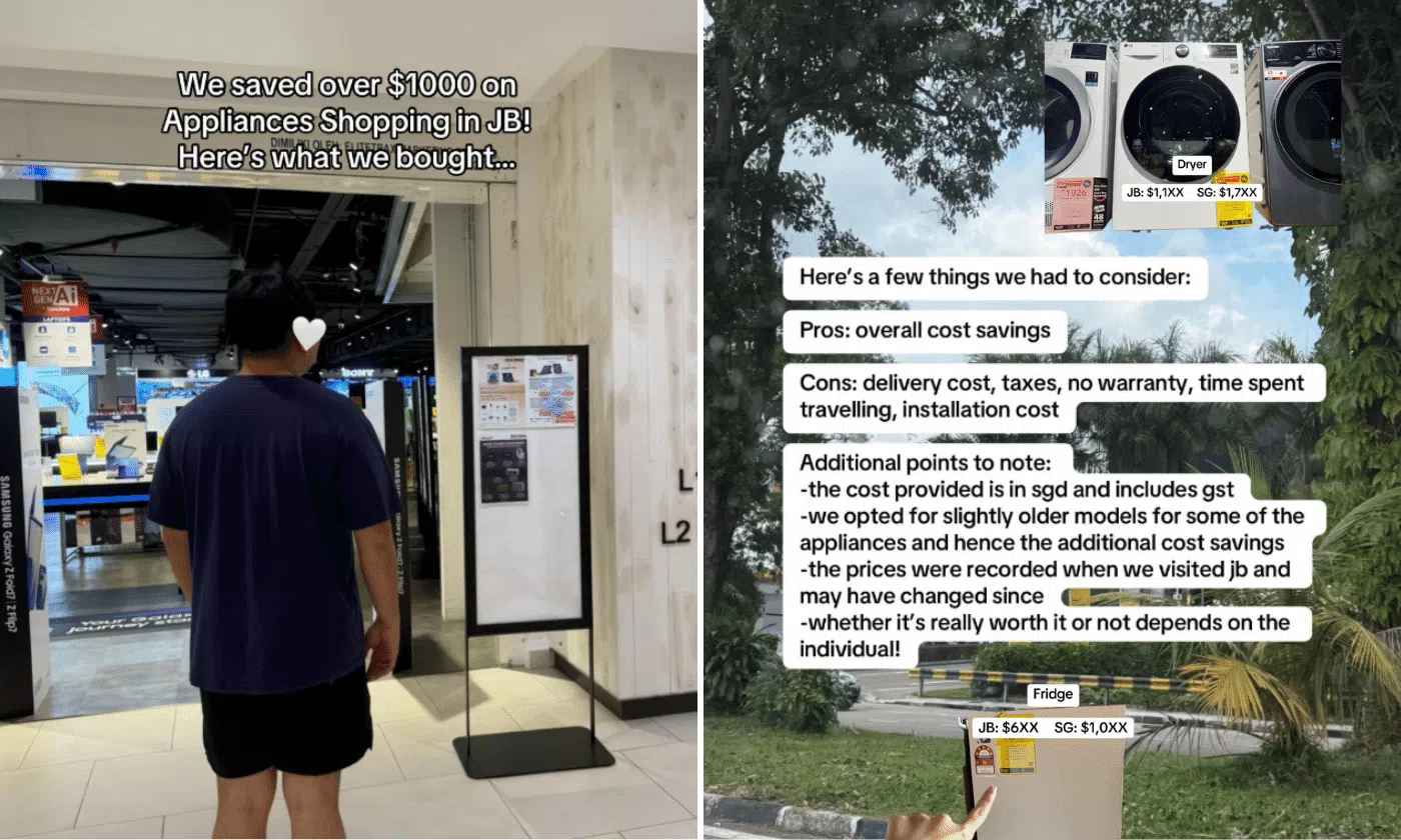 A Singaporean couple who crossed the Causeway to Johor Bahru to buy appliances for their new BTO flat say they racked up around $1,000 in savings.