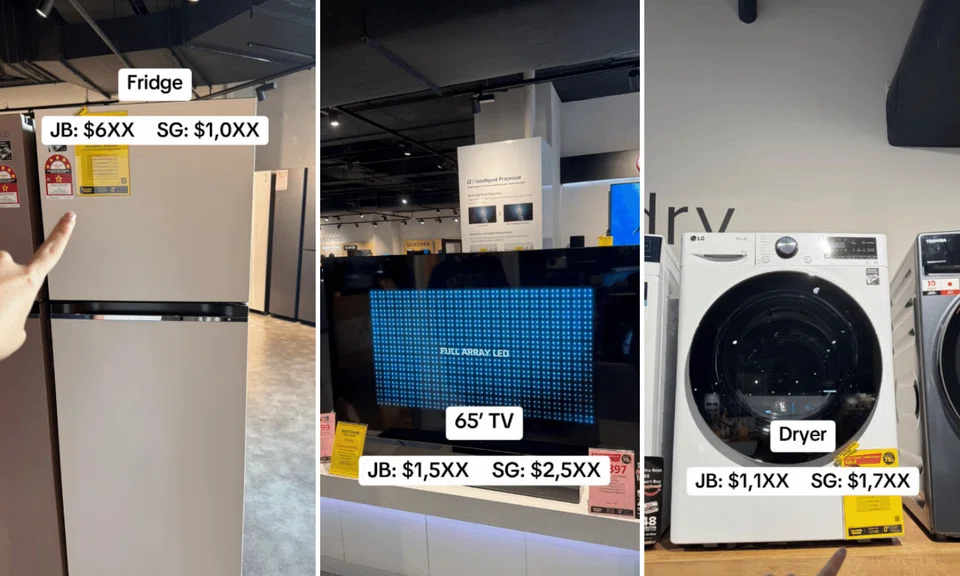 In a TikTok post, the couple compare the prices of various appliances in Johor Bahru and Singapore, including a refrigerator, washing machine, dryer, and a 65-inch television.