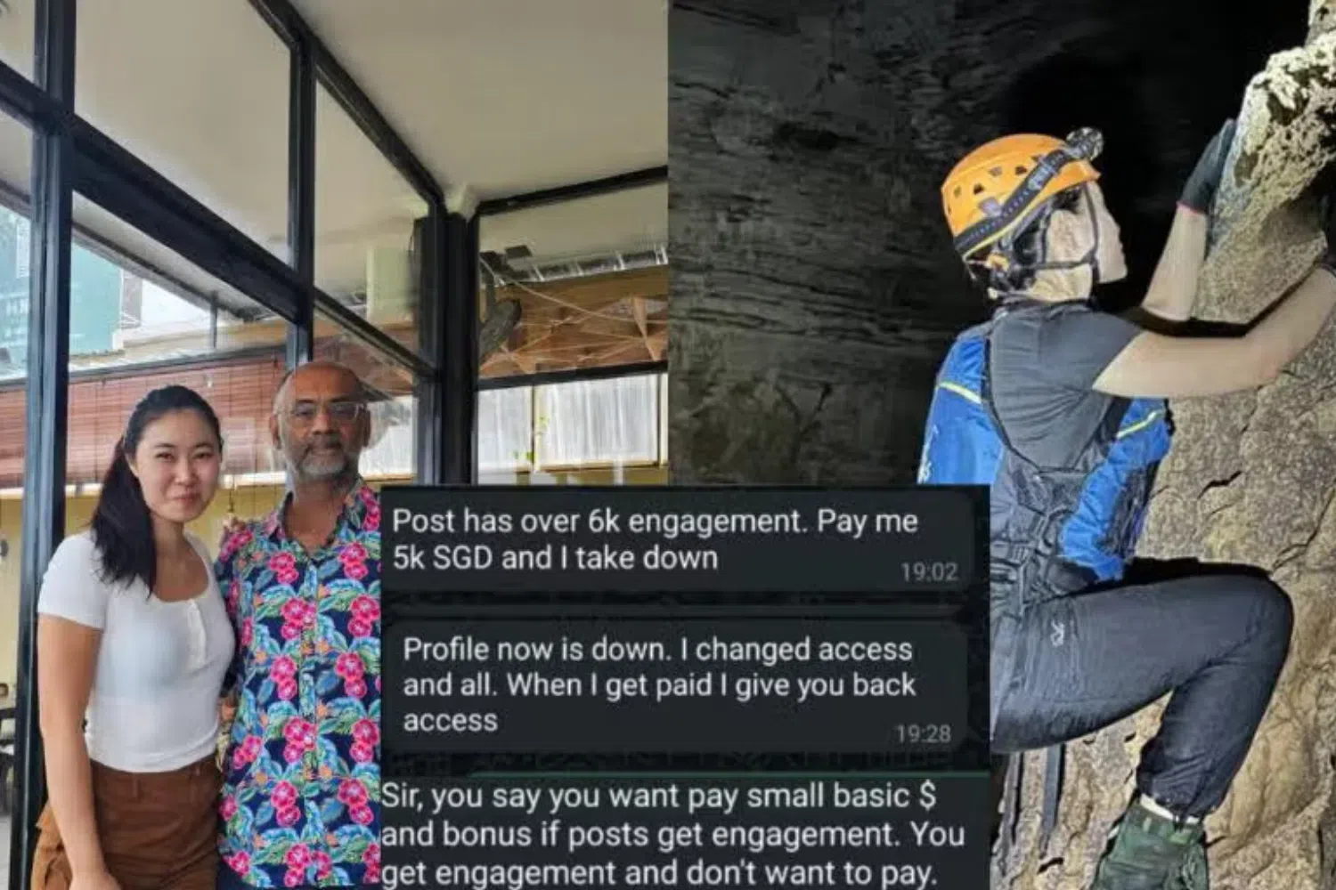 Screenshots of messages provided to 8World show the manager saying: "Post has over 6k engagement. Pay me 5k SGD and I take down."