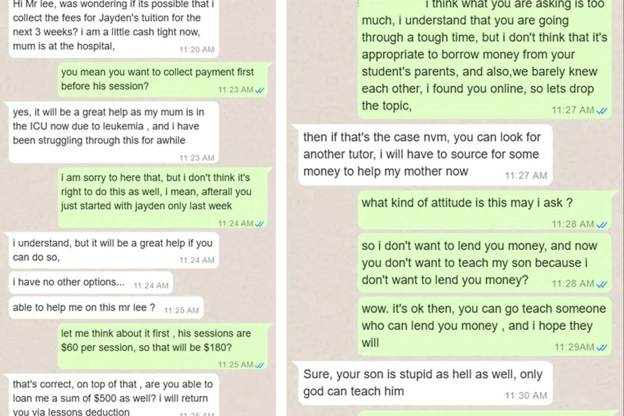 Mr Lee shared screengrabs of the exchange between his uncle and the tutor.